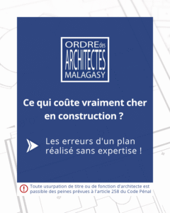 Pour construire en toute sérénité, faites confiance à un architecte inscrit à l’Ordre des Architectes Malagasy (OAM).